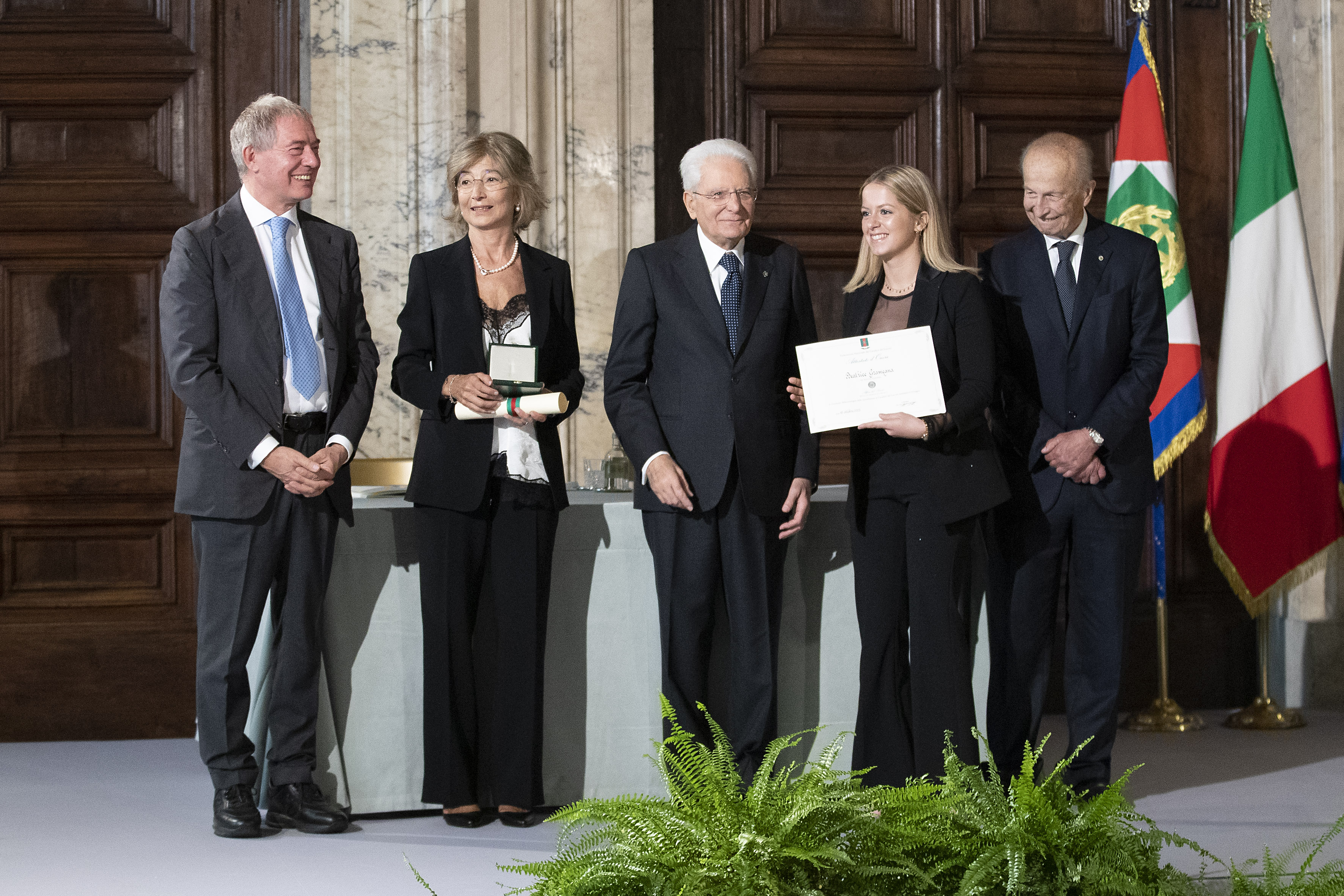 (Nella foto il Presidente della Repubblica Sergio Mattarella con Cavaliere del Lavoro Cristina Crotti e Alfiere del Lavoro Beatrice Gramegna)